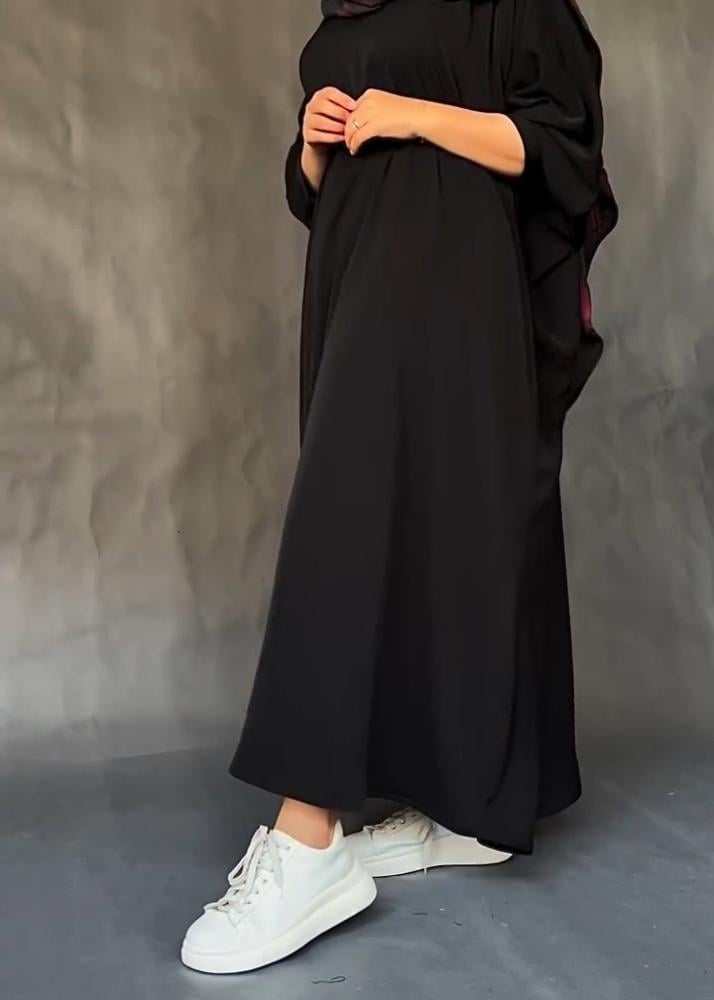 عباية راقية بتصميم بشت أنيق، تنسدل بانسيابية فاخرة وتمنحك حضورًا يجمع بين الرقي والنعومة.