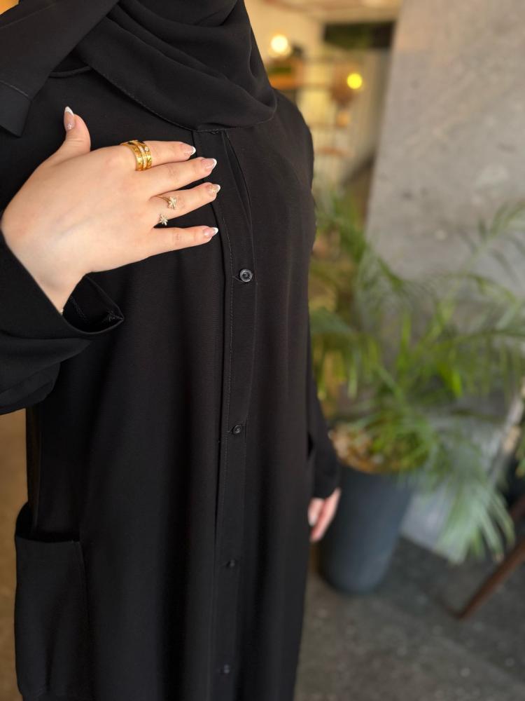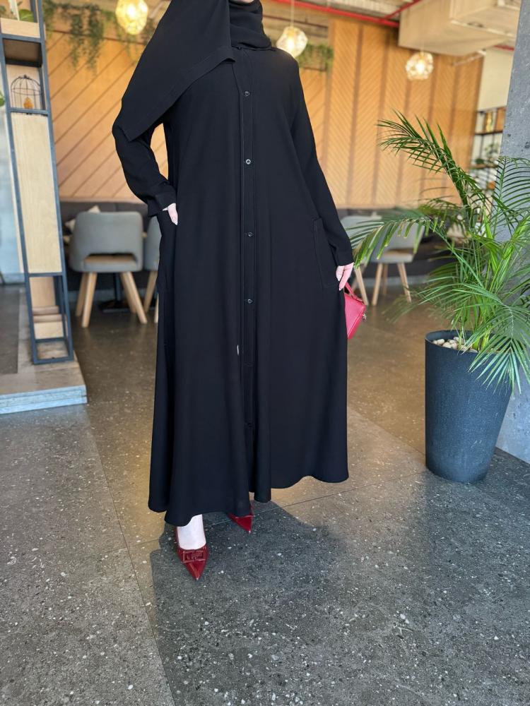 • طول العباية يؤخذ من الكتف الى أسفل الكعبين (من الأمام)